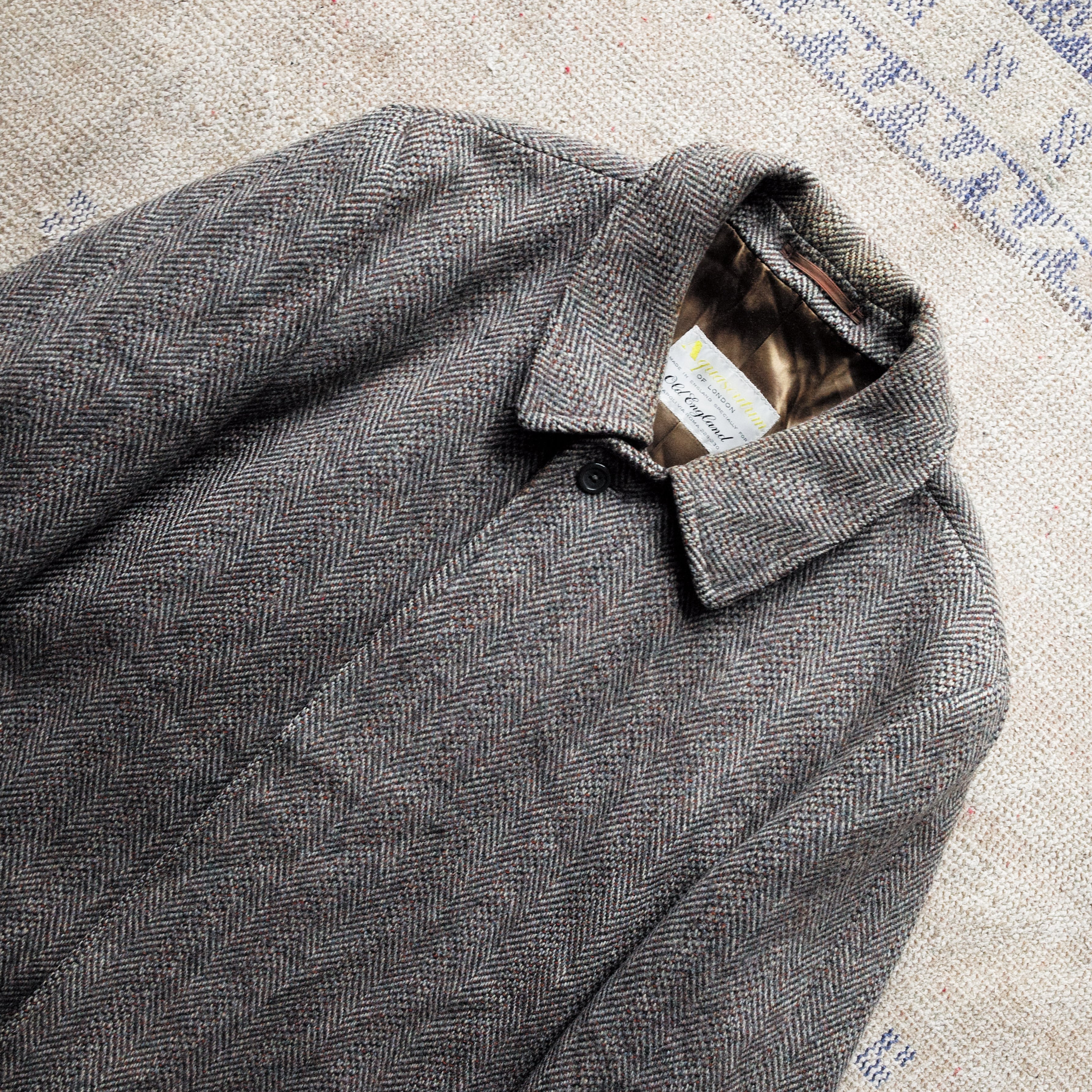 AQUASCUTUM × OLD ENGLAND バルマカンコート 三枚袖 ステンカラー トレンチ チェスターフィールド ラムズウール ヘリンボーン イングランド製 80年代 ヴィンテージ オールドイングランド アクアスキュータム